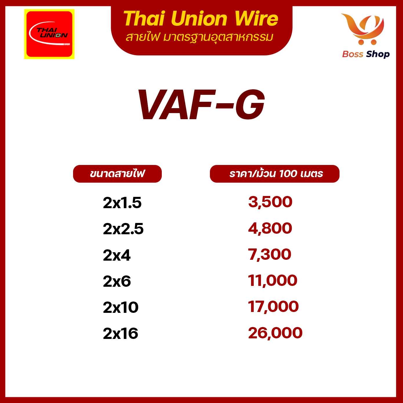 สาย VAF และ VAF-G เป็นสายไฟฟ้าที่คนทั่วไปคุ้นเคยที่สุด เพราะเป็นสายที่ใช้ตามบ้านและอาคารทั่วไป เป็นสายแกนคู่ ตัวนำไฟฟ้าผลิตจากทองแดง สามารถทนแรงดันไฟฟ้าได้ 300/500 โวลต์ ฉนวนและเปลือกเป็นพีวีซี สามารถทนอุณหภูมิสูงสุดได้ 70 องศาเซลเซียส