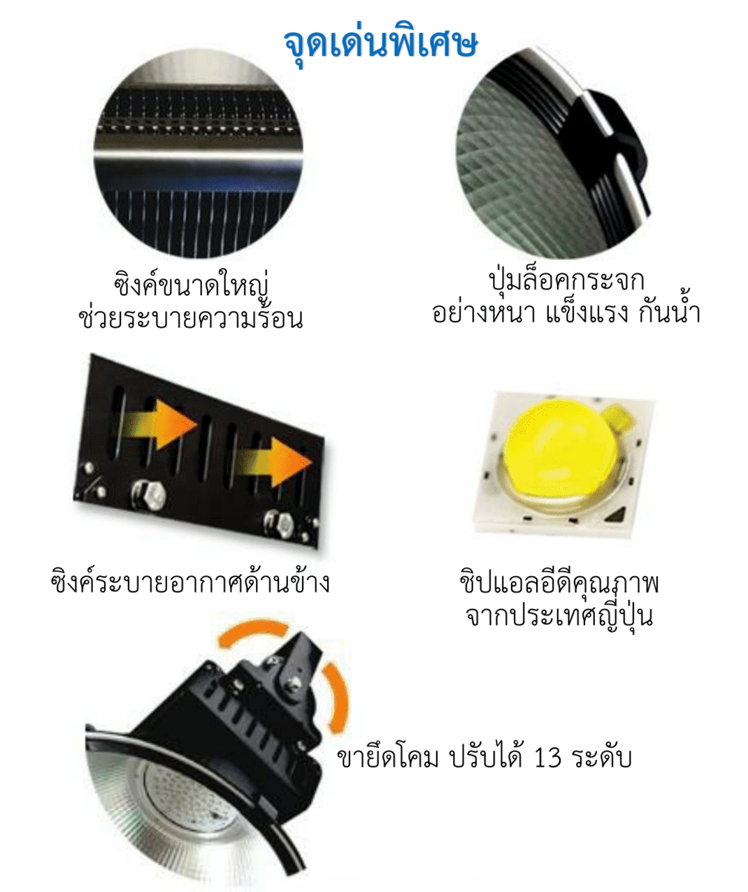 มุมกระจายแสงกว้าง ติดตั้งเพดานตํ่าได้ดี
