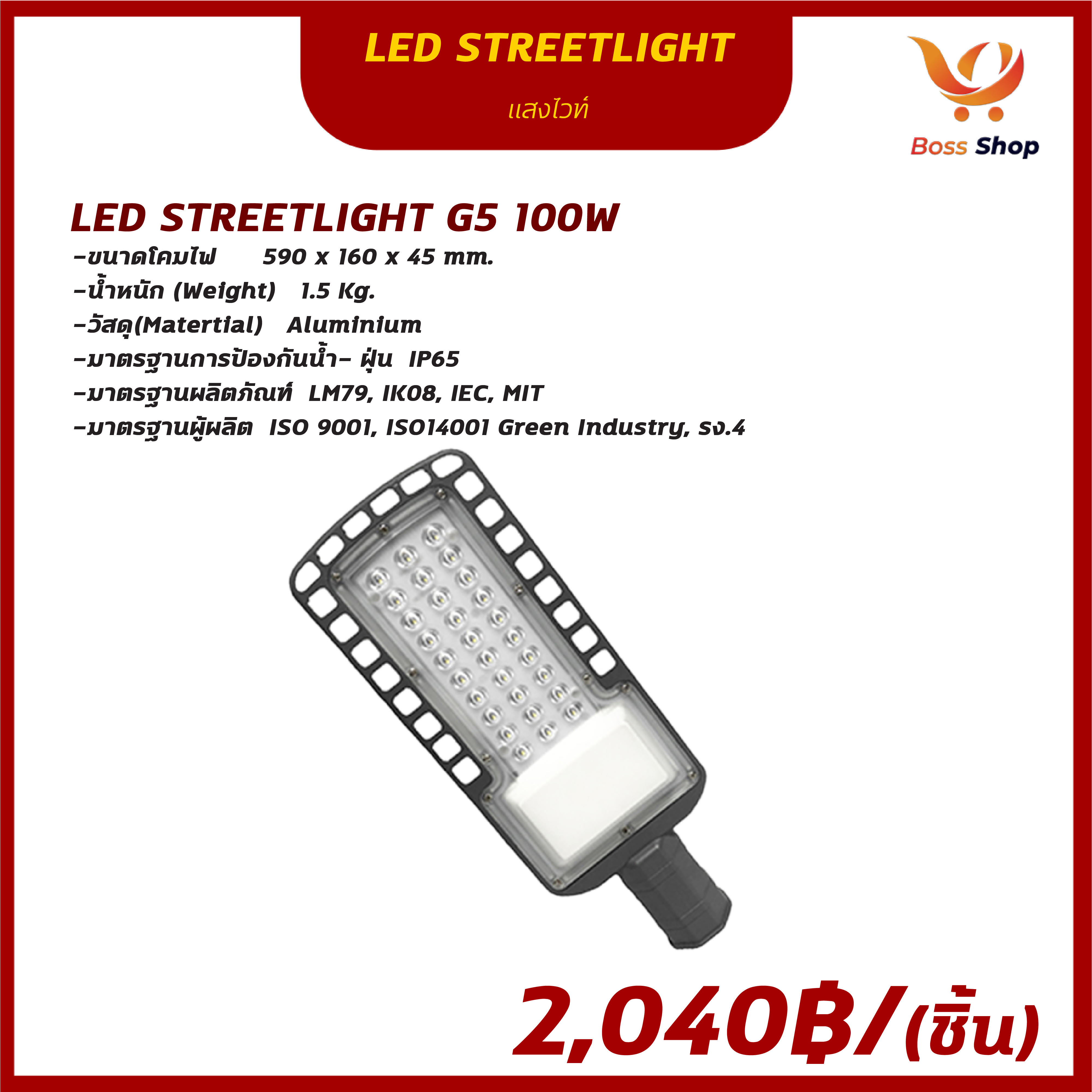 LED STREETLIGHT G5 100W แสงวอร์มไวท์ 2 040 บาท